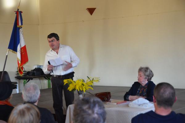 Après avoir salué particulièrement les représentants des associations des anciens combattants venus entourer Monsieur Pierre Orinier, alias Coquinette, un des derniers héros de cette terrible période, c’est avec beaucoup de plaisir qu’il présenta l’auteure, Marie-Claude Baulin, membre de l’association.