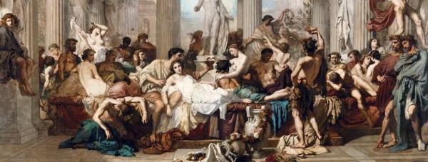 Parmi les salles de repas les plus époustouflantes, citons la « Cenatio Rotunda » de Néron mise au jour en 2009 : une fabuleuse salle à manger tournante au sommet d’une tour de plus de 20 mètres de haut : les convives avaient une extraordinaire vue panoramique sur la ville. Citons également le triclinium de « la Villa d’Hadrien » à Tivoli : les plats arrivaient sur l’eau jusqu’aux convives dans une mise en scène extraordinaire ! Bon nombre d’empereurs sont restés mesurés face aux plaisirs de la chère. Il n’en est pas de même de certains que l’histoire a davantage retenus pour leurs abus alimentaires et leur concupiscence que pour leurs actions. Des écrivains antiques ont évoqué ces orgies pour souligner leur indécence.