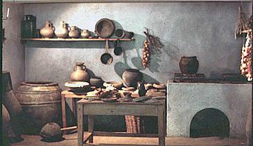 De nombreuses habitations modestes étaient dépourvues de cuisine. Quand il y en avait une ce n’était qu’une petite pièce rudimentaire vite enfumée, mal aérée. Les Romains modestes se rendaient volontiers dans des petites échoppes de rue où l’on servait des plats assez grossiers mais consistants et peu coûteux que l’on pouvait consommer sur place ou emporter. Les Romains connaissaient donc déjà les fast-foods ! Ces établissements étaient fréquentés par le petit peuple. En 2020, un « thermopolium » en excellent état de conservation fut exhumé des cendres de Pompéi : un comptoir avec des pots en terre cuite contenant encore des restes alimentaires.