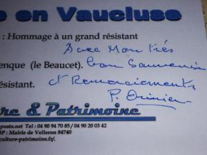 Selon la tradition, il dédicaça, avec plaisir, l’affiche de la conférence, qui restera un souvenir très émouvant de cette rencontre.