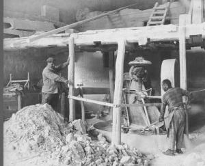 Il faudra attendre le milieu du XX° siècle pour que les conditions très pénibles de ce travail soient améliorées. Jusqu’à cette période, les ouvriers devaient casser la pierre à la barre à mine pour passer ensuite les morceaux dans des broyeurs.