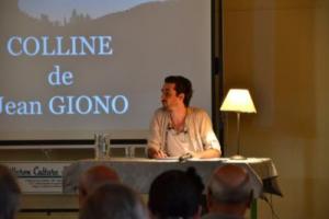 retenu pour cette rentrée 2019 une lecture : celle du premier roman de Jean Giono : COLLINE. Romain ARNAUD, comédien du T.R.A.C (Théâtre rural d’Animations Culturelles) qui se produit régulièrement au festival d’Avignon avait la tâche ardue de capter l’attention de l’auditoire durant une heure et demie de lecture environ.