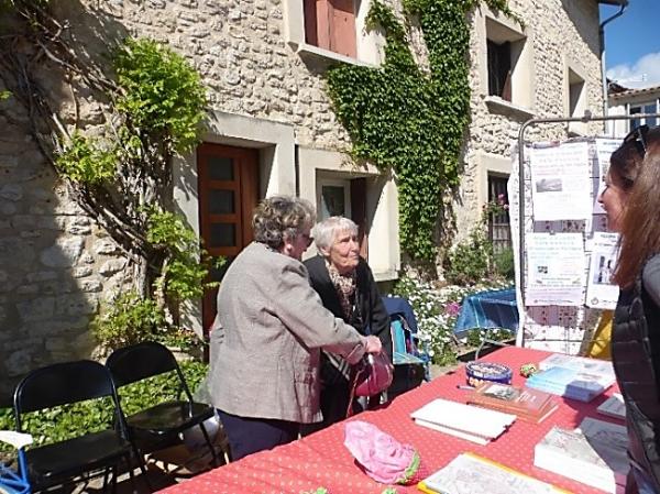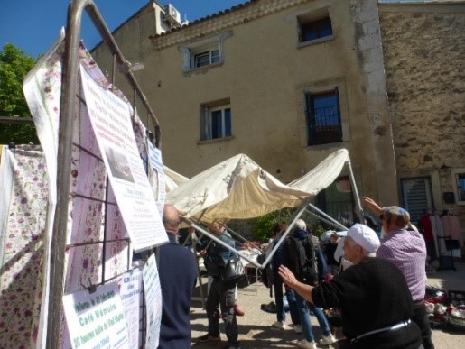 De façon régulière, les visiteurs affluaient, regardaient, comparaient, se détournaient, pour revenir et finalement souvent se décidaient. Satisfaits, rassurés de leur choix, panier au bras, ils prenaient ensuite le temps de flâner, de s’arrêter, de discuter et ne se privèrent pas de curiosité devant les albums photos d’école et de familles anciennes de Velleron. Les ouvrages édités par l’association, comme les affiches sélectionnées des Cafés Mémoires pour cet affichage 2024 entraînèrent beaucoup de questions : Comment faisons-nous ? Qui fait quoi ? etc.