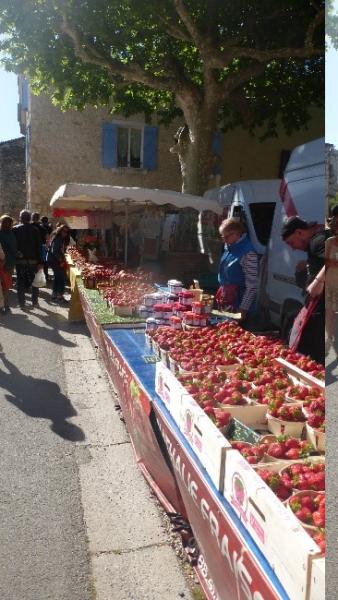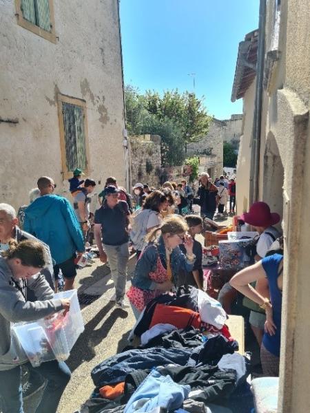 Pendant que l’installation des producteurs de fraises se faisait dans la bonne humeur entre le château de Crillon et le château de Cambis, occupant ainsi toute la place de la mairie, les rues du village se paraient des innombrables trésors du gigantesque vide grenier que les premiers chineurs très matinaux venaient découvrir.