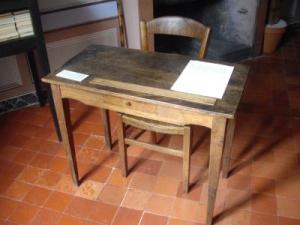 – Emprunter l’escalier qui même à son bureau, mettre nos pas dans les siens pour approcher ces vitrines remplies par ses soins,…et lire avec émotion les quelques lignes dédiées à » sa petite table » de travail : « Que deviendras-tu quand le Maître ne sera plus là?»
