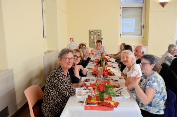 Pour ce rendez-vous amical, la salle décorée aux couleurs de la nature en fleurs, (roses des jardins et