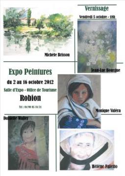Exposition de peintures du mardi 2 octobre au mardi 16 octobre 2012, de 9h à 12h30 et 13h30 à 17h,  à l’Office de Tourisme  municipal de Robion.